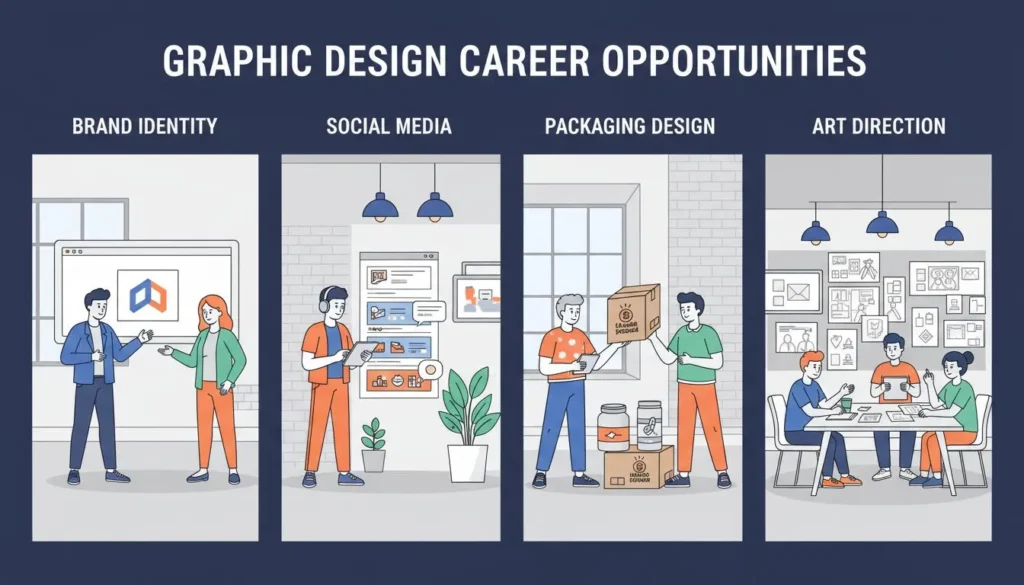 Graphic design is one of the most versatile creative careers in existence. Once you have core skills, you can pivot, specialise, or combine disciplines in dozens of ways.